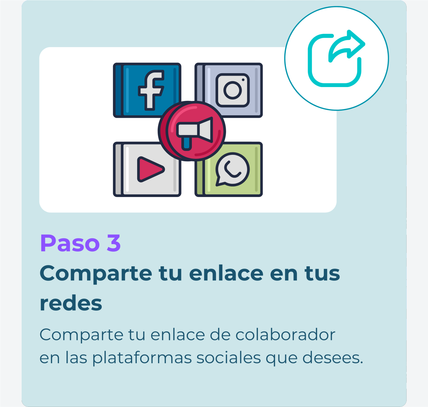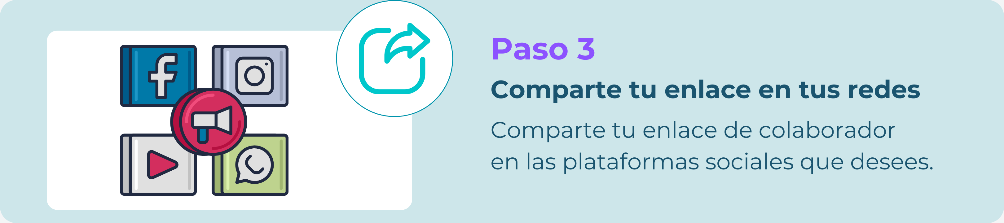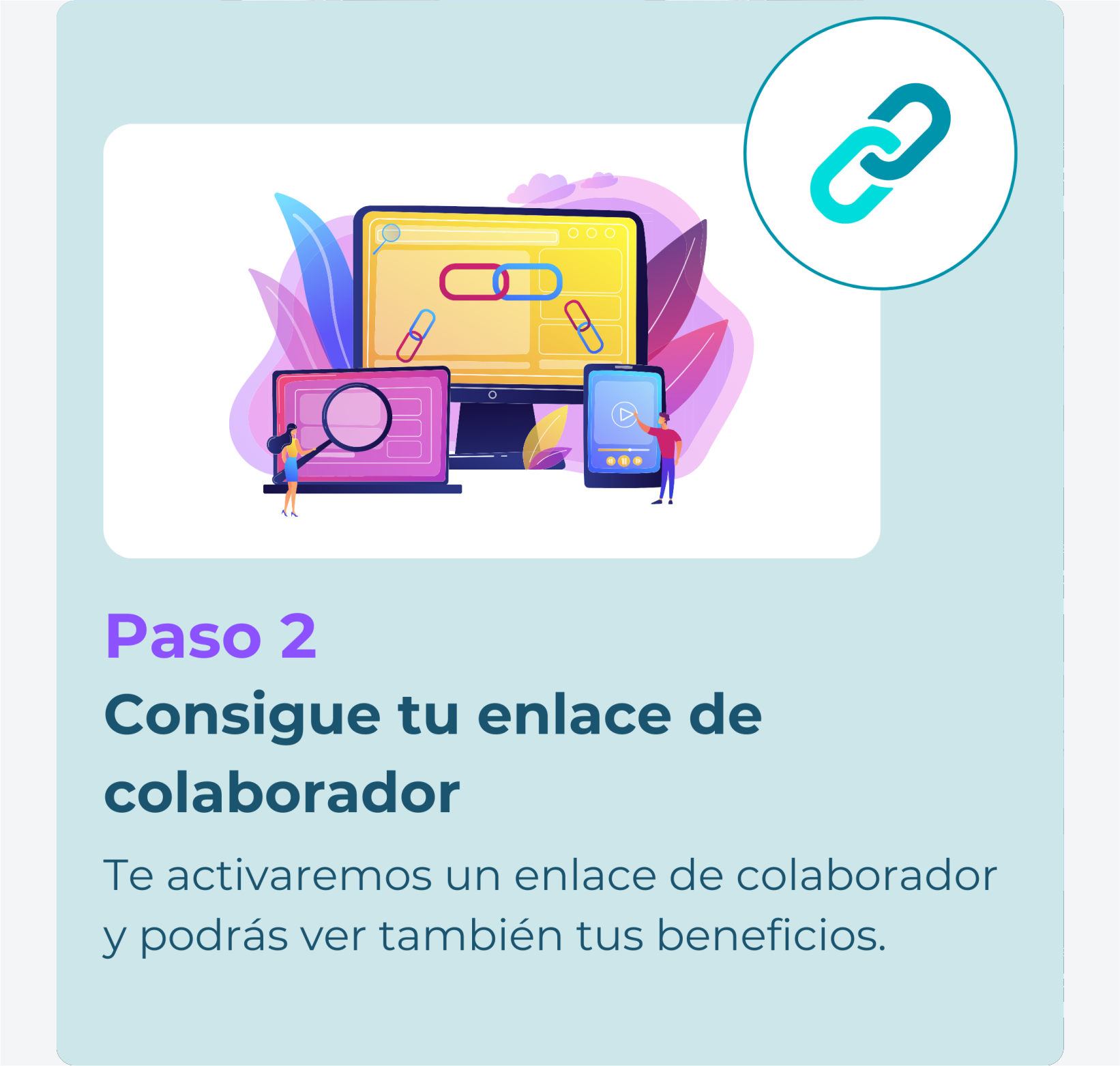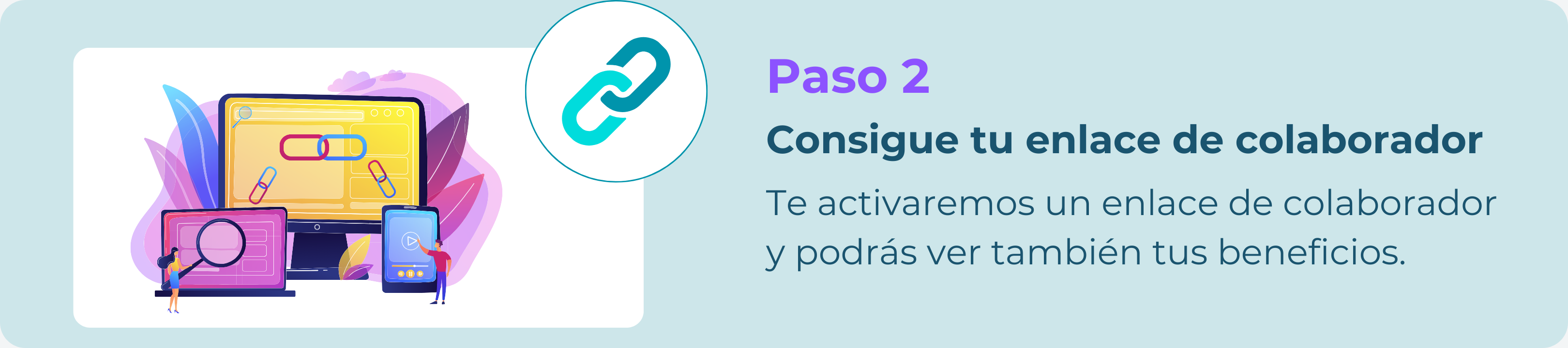 - Paso 2: Evaluaremos su registro y le activaremos su enlace de colaborador y podrá promoverlo a través de sus plataformas sociales.