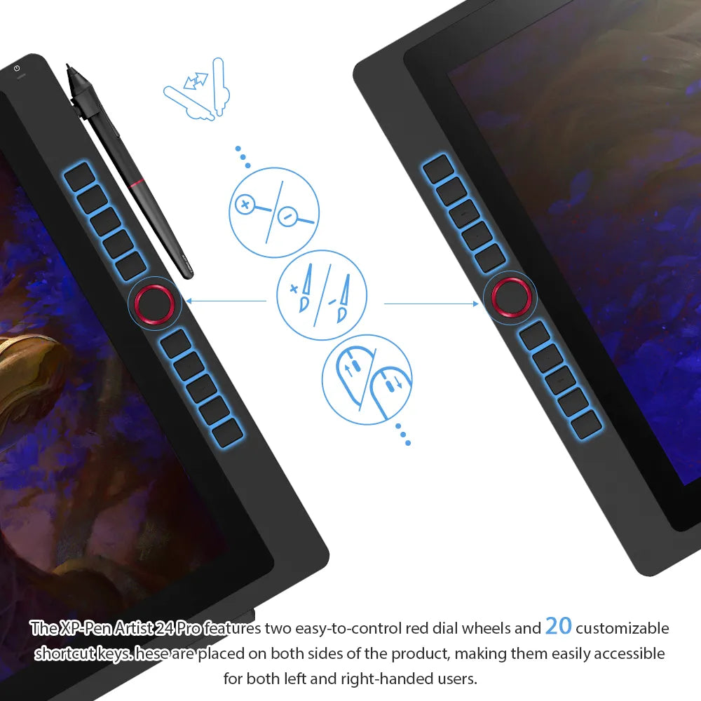 Descubre la XP-PEN Artist 24 Pro, una pantalla gráfica profesional diseñada para quienes viven del arte digital. Su panel QHD 2K de 23.8 pulgadas ofrece el doble de resolución que una pantalla Full HD, brindando imágenes nítidas, colores vibrantes y un nivel de detalle impresionante que permite trabajar con precisión en cada trazo.