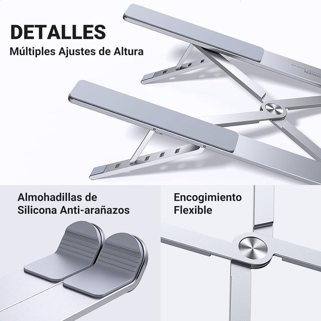 UGREEN Soporte portátil de aluminio, ajustable, plegable, para Laptop, Tablet, iPad, MacBook de 8" a 17.3" pulgadas (LP451 - 40289)